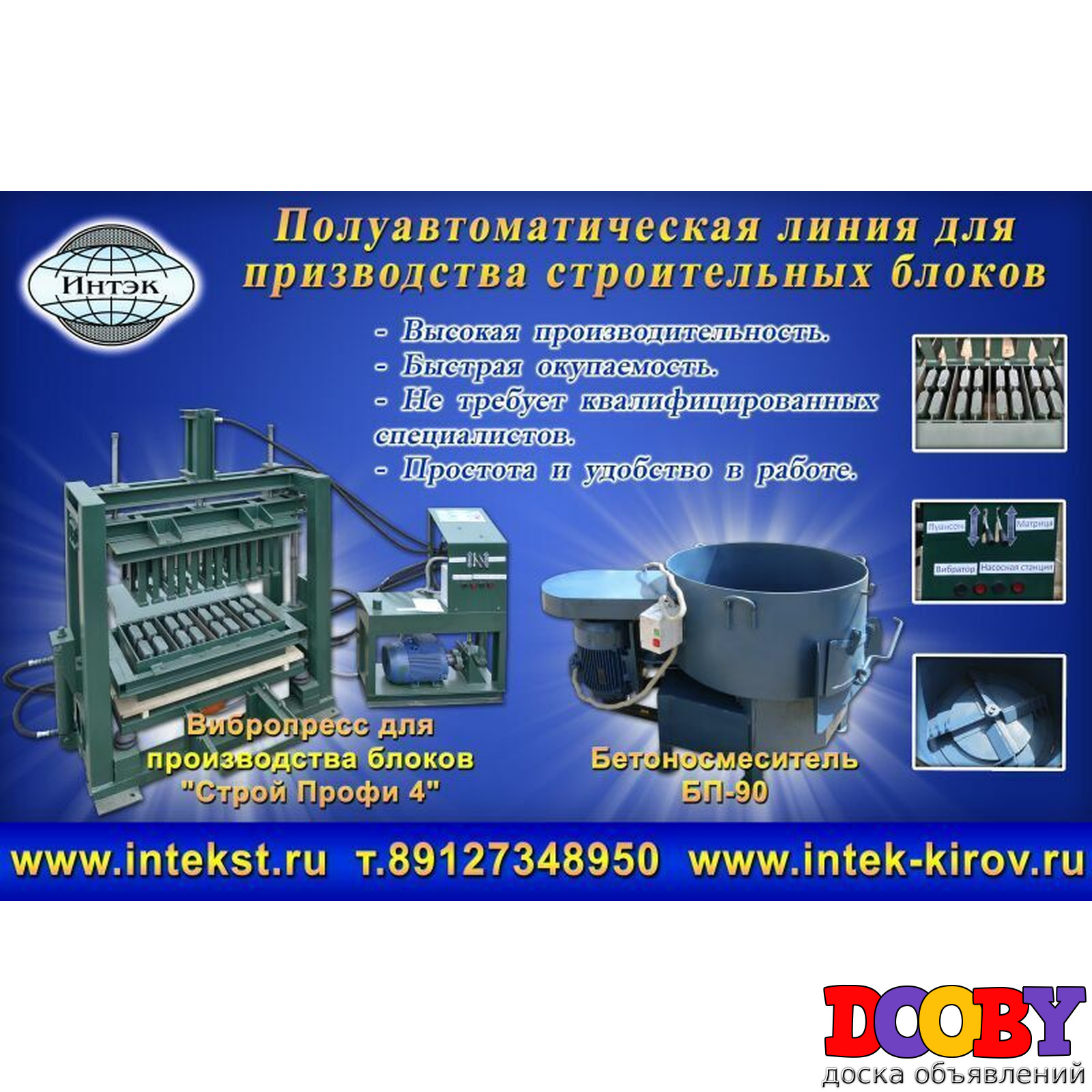 Станки вибропресс работают под напряжением 380 В, при этом мощность электроприводов вибропресса составляет 3,1 кВт. Вибропресс для блоков отличается компактными размерами (при весе в 500 кг габариты станка составляют 230*110*165 см), поэтому под весь производственный процесс достаточно будет отвести площадь в 15-20 кв.м. При необходимости вибропресс для блоков легко можно транспортировать с одного строительного объекта на другой, что делает его максимально удобным. Вместо стандартных амортизационных пружин станки вибропресс оснащены инновационной системой резиновых подушек – это дает возможность существенно снизить шумовой эффект от работы вибратора. 8-912-700-67-31 8 8332 247 333